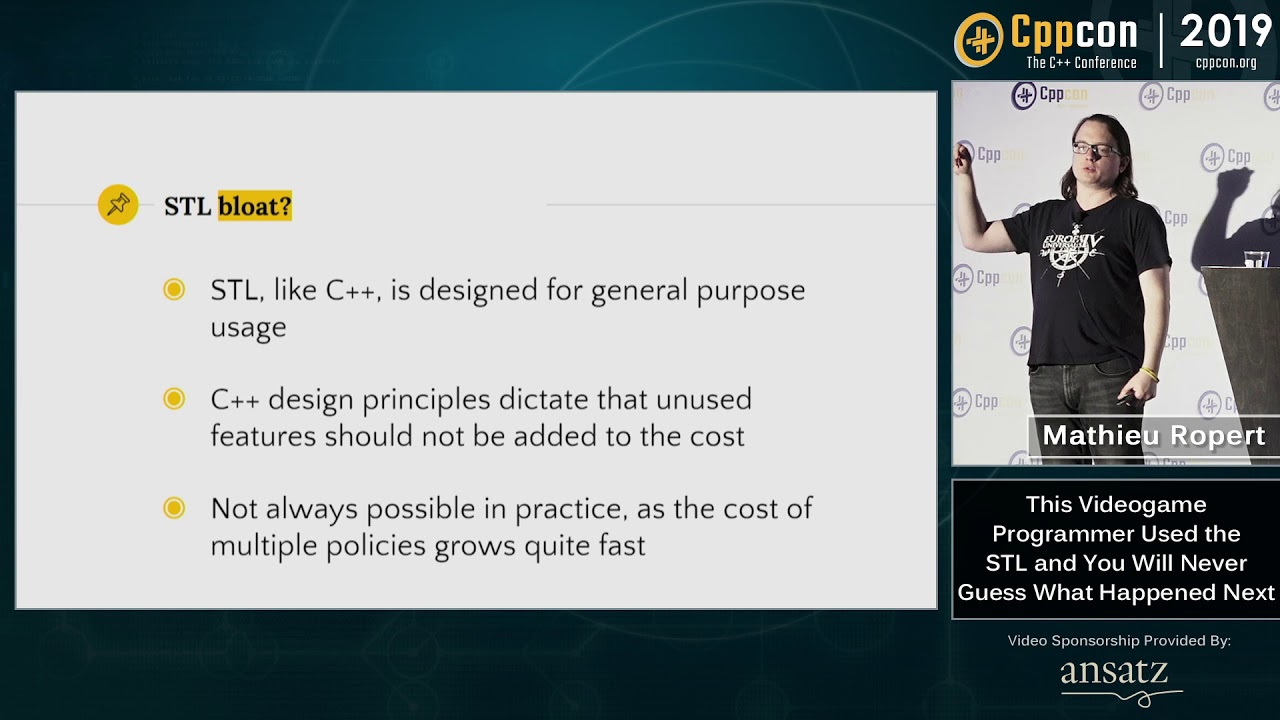 We will start by a discussion about the most common criticism against the STL and its idioms made by the gamedev community.